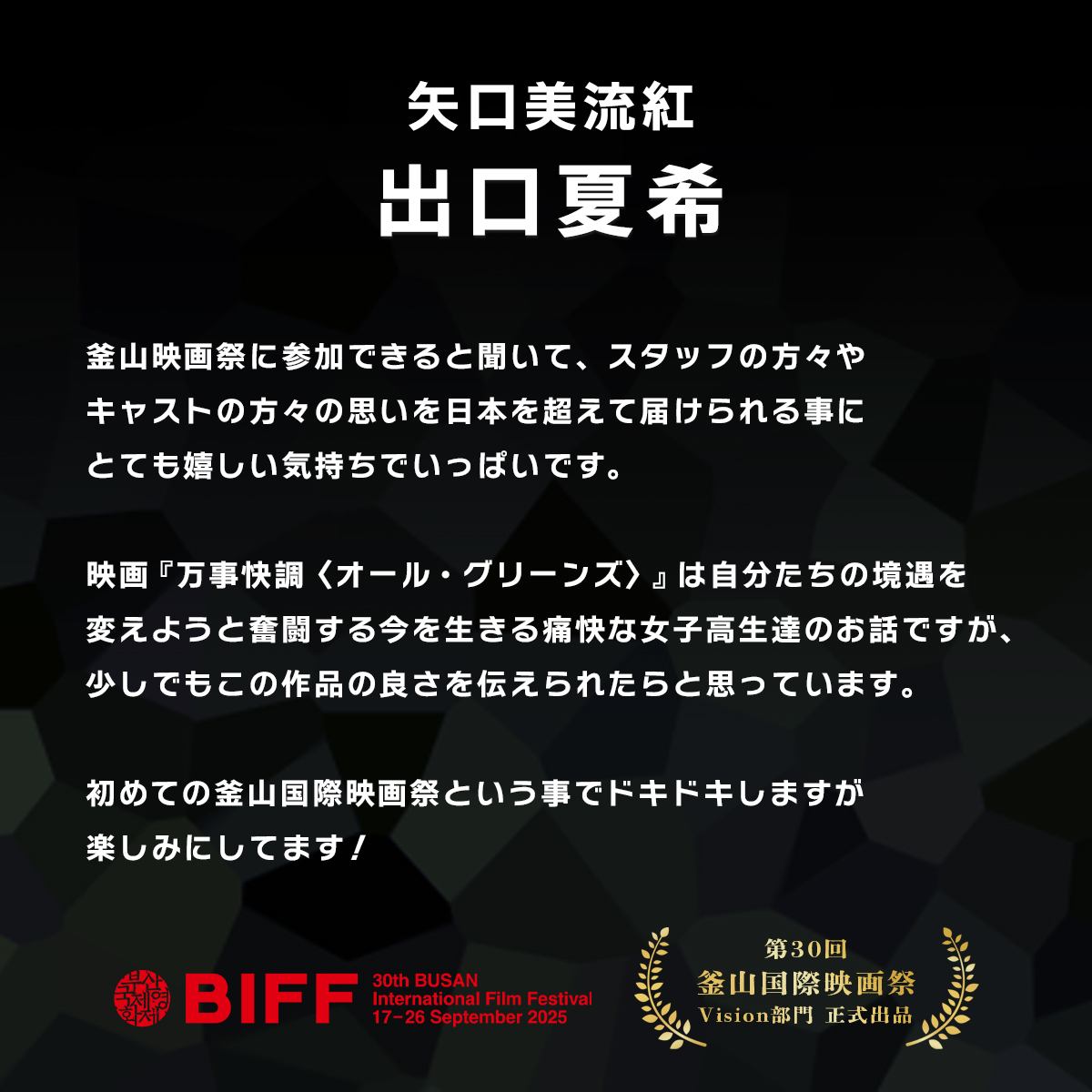 《第30回釜山国際映画祭》に正式出品決定!南沙良&出口夏希&児山隆監督よりコメント到着